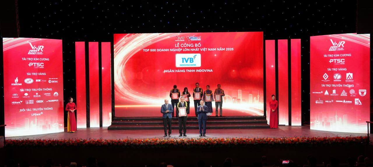 On the afternoon of January 8, 2026, in Hanoi, Indovina Bank Ltd. (IVB) was honored for the 7th time as one of the Top 500 Largest Enterprises in Vietnam 2025 (VNR500) – a prestigious ranking jointly organized by Vietnam Report Joint Stock Company (VietnamReport) and VietNamNet Newspaper.