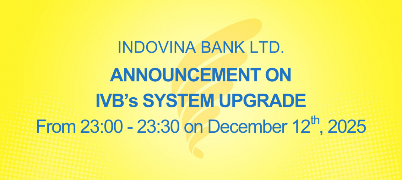 Indovina Bank Limited (IVB) would like to sincerely thank customers for trusting in using products and services and accompanying IVB during the past time.