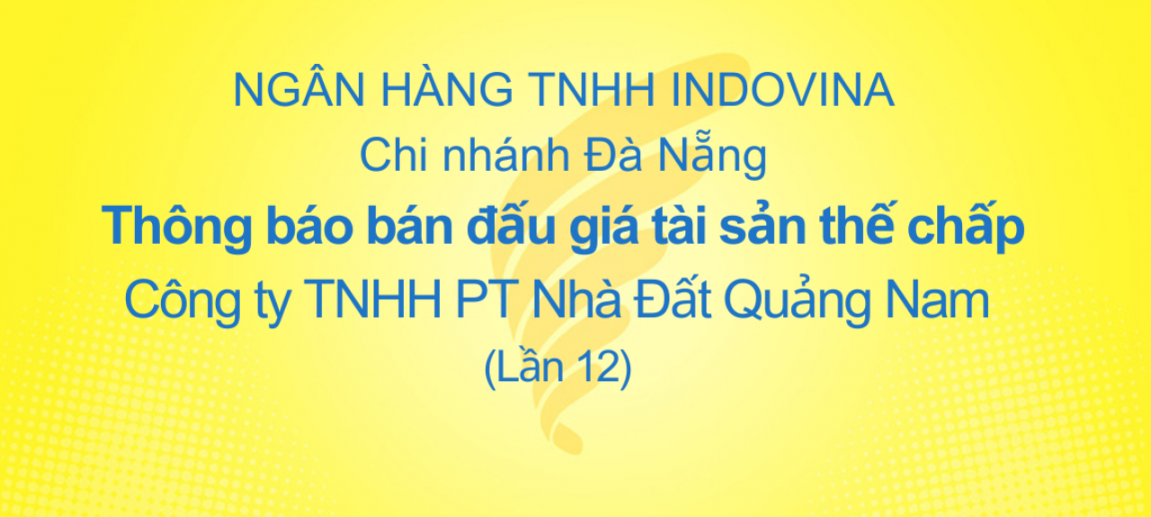 Ngân hàng TNHH Indovina - Chi nhánh Đà Nẵng (Gọi tắt là IVB - Chi nhánh Đà Nẵng) thông báo bán đấu giá tài sản thế chấp như sau:
