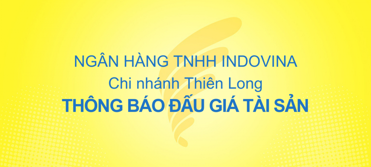 Ngân hàng TNHH Indovina – CN Thiên Long (IVB) thông báo tới Quý đối tác quan tâm về việc tổ chức đấu giá tài sản như sau: