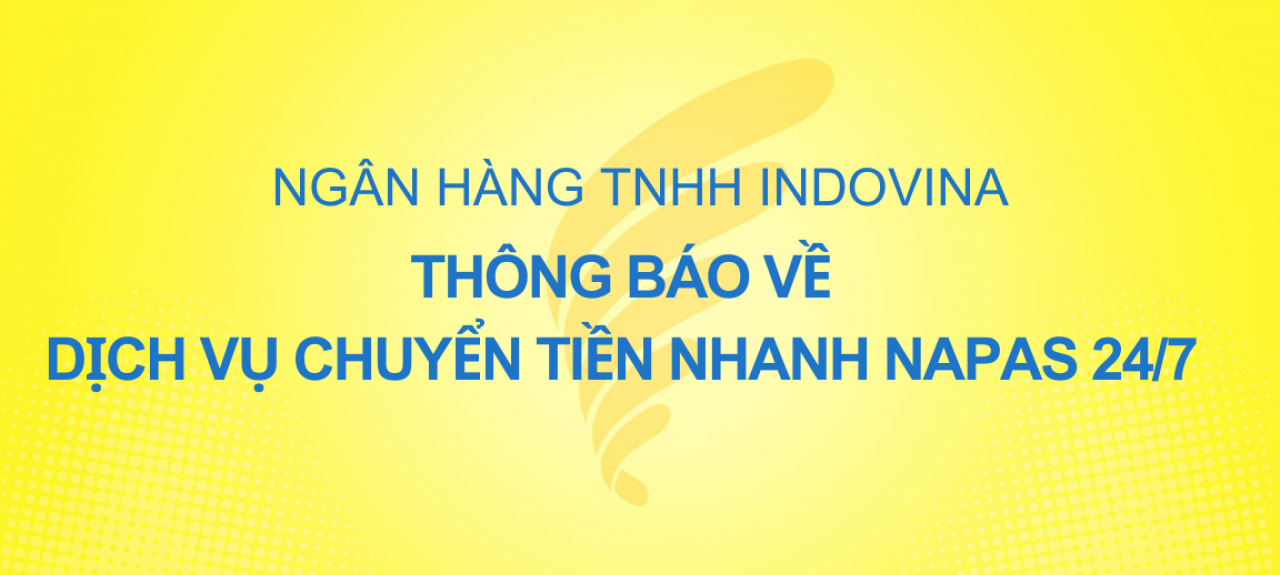 Ngân hàng TNHH Indovina (IVB) trân trọng thông báo đến Quý khách hàng về phí dịch vụ chuyển tiền nhanh Napas 24/7 như sau: